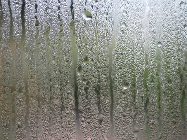 で、室内の暖かい空気がその冷たいドアに触れると、コップの水滴みたいに結露ができる仕組みなんです。